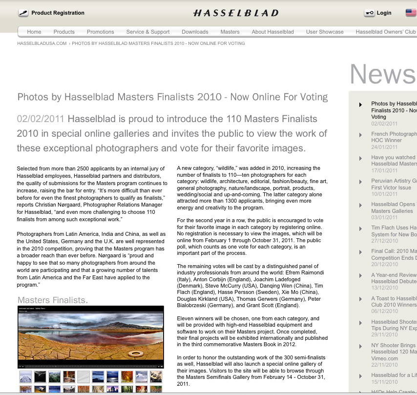 I just found out that I was named a 2010 Hasselblad Masters Finalist. I am very excited as Hasselblad is one of the greatest and most prestigious camera makers in history. Known for its technical precision and unrivaled quality, I have used Hasselblad cameras since I was an amateur photographer living in Brighton, England and am still a proud owner today shooting with a 39 megapixel beauty in my Manhattan studio.