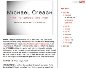 Out today is my interview by Reynolds 2.2!! A very cool blog and a different insight into some of my work. We first spoke after he interviewed one of my favorite subjects Natascha… Continue reading